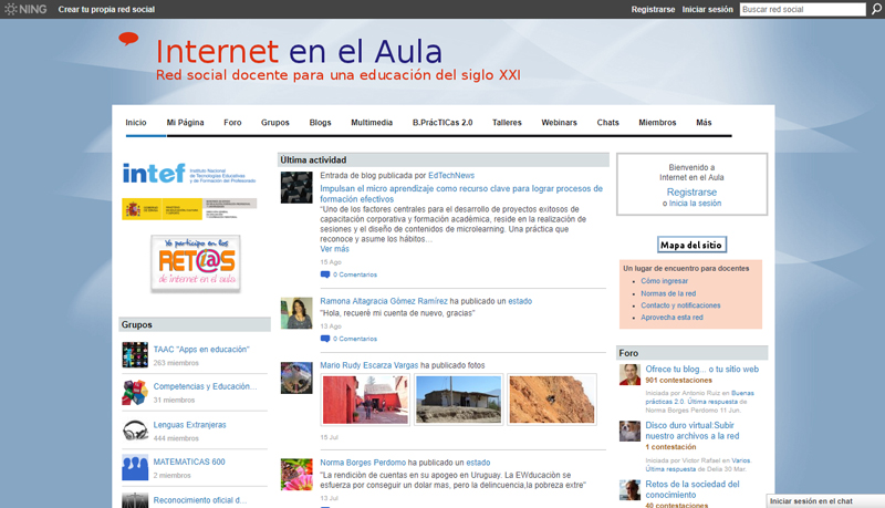 4) Internet en el aula: xarxa social docent de l’INTEF (Institut Nacional de Tecnologies Educatives i Formació del professorat), en què comunitats de professorat comparteixen les seves experiències i els recursos per a la inclusió d’internet a l’aula.